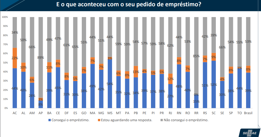 No ano passado, pouco antes da aprovação do Pronampe, o Sebrae sondou a quantidade de empresas que estavam com dificuldades de obter os recursos para amenizar os efeitos do fechamento das atividade durante a pandemia no Rio Grande do Norte. Somente 24% dos pequenos negócios pesquisados e que buscaram um agente financeiro conseguiram o dinheiro. A grande maioria não teve o pedido aceito.