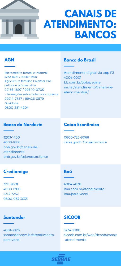 AGN – A Agência de Fomento do Rio Grande do Norte (AGN) disponibiliza uma linha de crédito para pessoas jurídicas na categoria de Microempreendedor Individual e outra para o segmento de turismo o Fungetur. MEI – limite de crédito de até R$ 12 mil, 24 vezes, carência de 3 meses, taxa de juros de 1,7% a.m (capital de giro) com bônus de adimplência de 100% dos juros. Já o AGN Fungetur – limite de crédito de até R$ 100 mil, 48 vezes, carência de seis meses, taxa de juros de 5% a.a + IPCA, tendo como público alvo MEI, ME e EPP do segmento do turismo.
