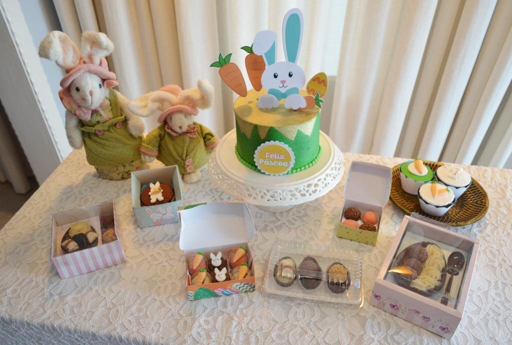 Além dos ovos de páscoa feitos artesanalmente, Aida Cortez dedica-se à produção de bolos e cupcakes decorados com o tema da páscoa, assim como os doces finos com motivos de coelho, cenoura e ovos coloridos. “Procuramos encantar adultos e crianças, tanto com a apresentação dos nossos produtos, como pelos sabores especiais”, afirma Aida, que tradicionalmente trabalha com bolos confeitados, tortas, doces finos e salgados para eventos festivos.