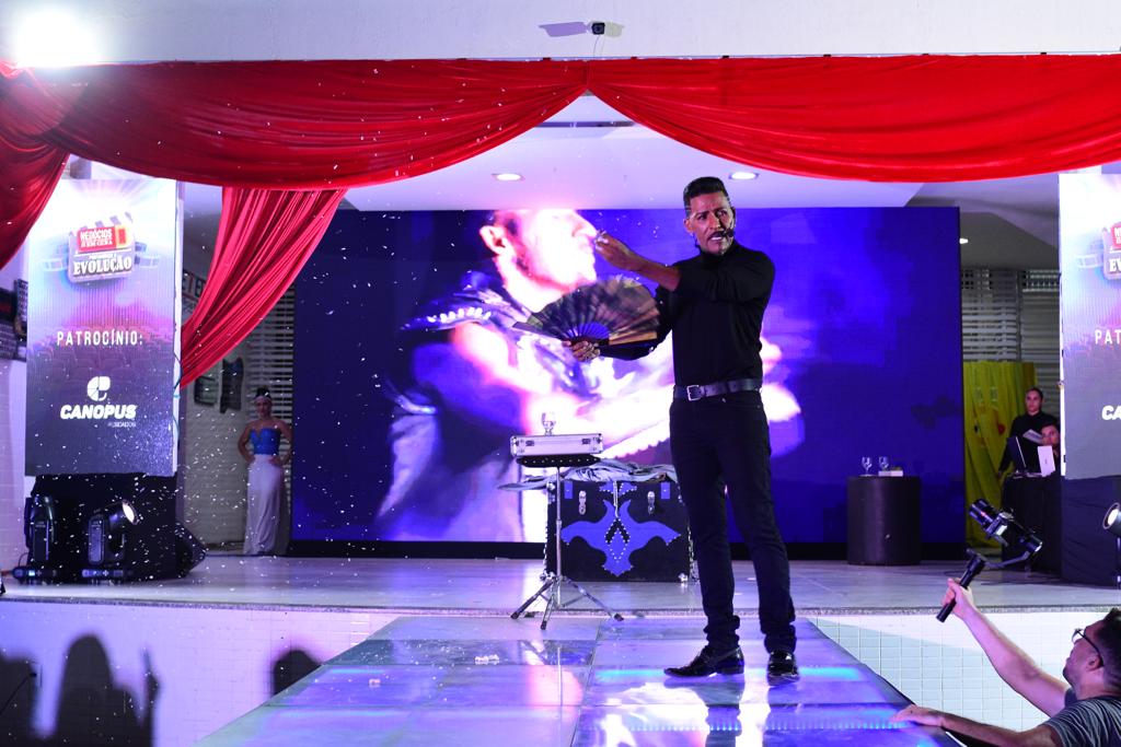 O mágico ilusionista potiguar Rian Razzani foi uma das atrações da noite com uma palestra show
