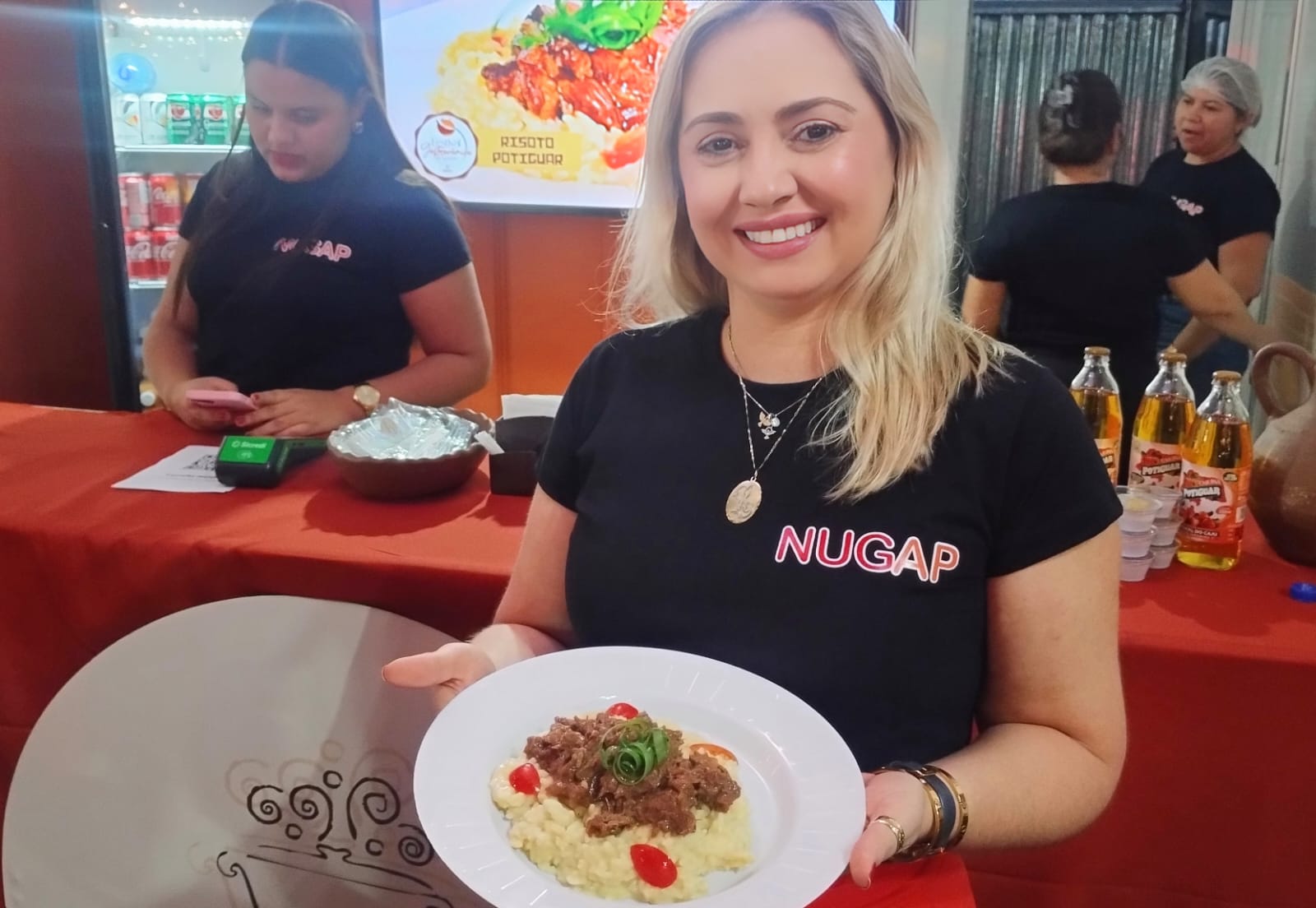 Com um risoto de carne que leva uma redução de cajuína – produzida no município de Severiano Melo e certificada pelo Feito Potiguar – Ana Luiza Melo, proprietária do Restaurante Palheiros, está conquistando o paladar dos participantes do festival. Feliz com os resultados, a empresária conta que a capacitação fez a diferença na elaboração do prato.